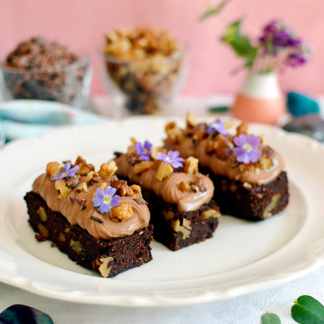 Des recettes sans gluten : gâteau au chocolat, cookies, carrot cake, pancakes, banana bread, brownie, mousse au chocolat, crêpes, tartelettes vanille-chocolat.